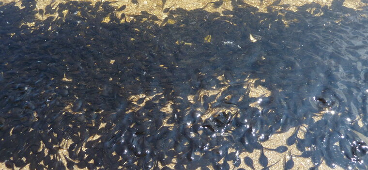 Probablement des têtards de crapaud. J’en avais jamais vu en si grande concentration. Impressionnant !