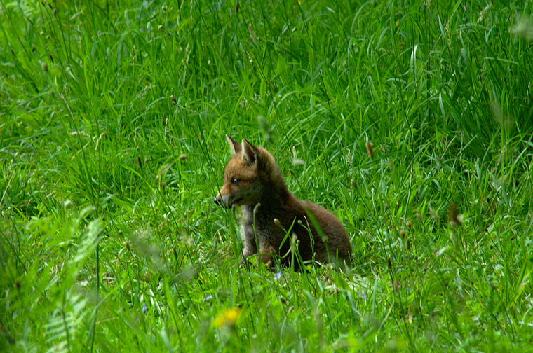 3 petits renards en train de jouer au soleil dans une prairie vers 16h30/17h00 !