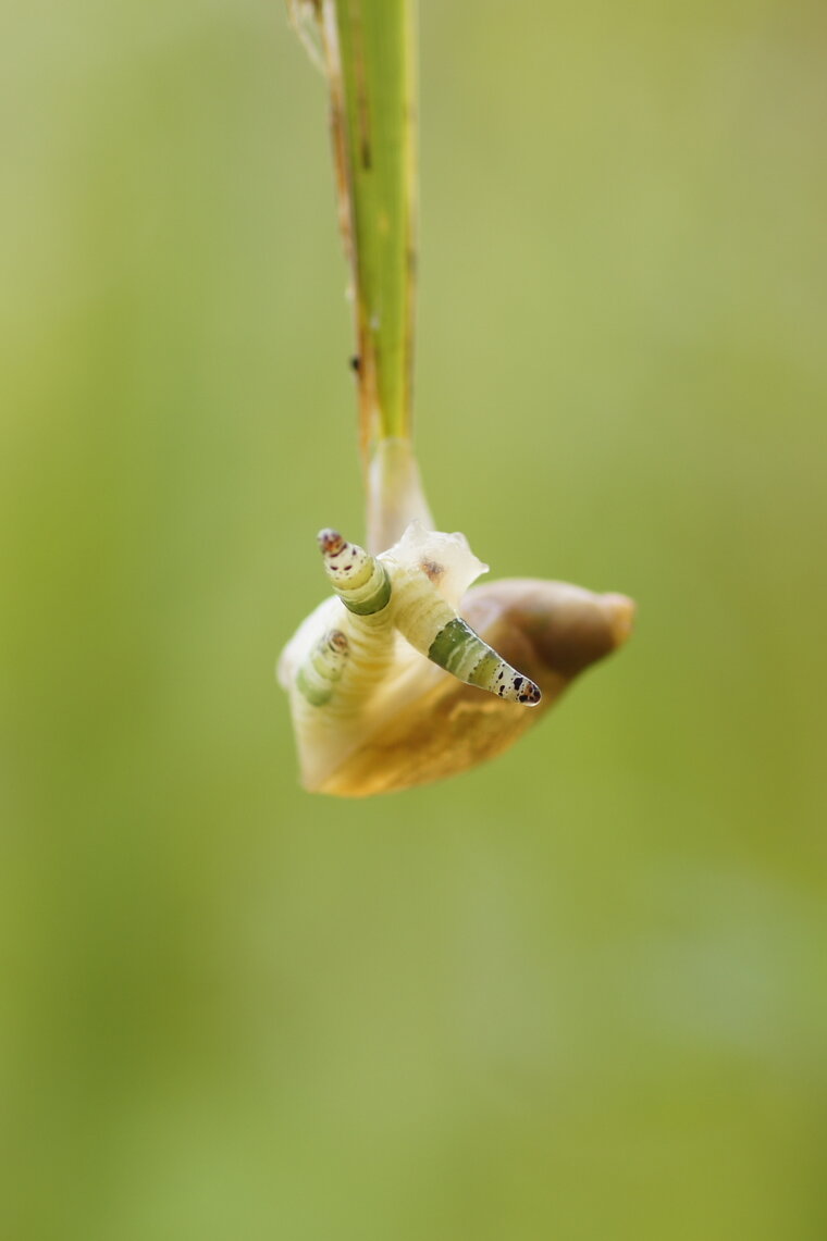 De là, les larves se sont développées. ensuite, leur "objectif" est de pouvoir intégrer le corps d’un nouvel individu afin d’y continuer leur croissance, l’escargot ayant été littéralement siphonné.