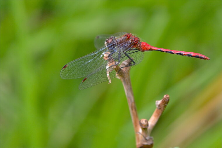 Sympetrum obtrusum. En anglais : White-faced Meadowhawk. Mâle. Vue de côté. Classe des Insectes. Ordre des Odonates. Famille : Libellulidae. Photographie prise le 25/08/2013.