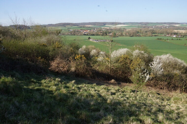 vue sur le village d’Alquines depuis un coteau calcaire, à l’ouest de la cuesta du boulonnais.