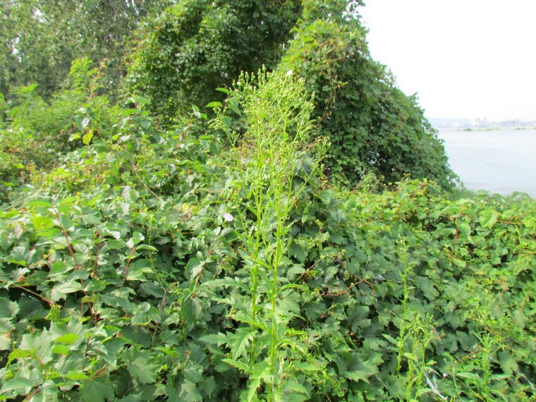 Son nom français est l’Érechtite à feuilles d’Épervière.