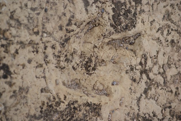 Empreinte fossilisée d’une patte à 3 doigts d’un dinosaure de la famille des théropodes, jolies "petites" bestioles ayant vécues il y a 120 à 130 millions d’années avant l’époque du tyrannosaure