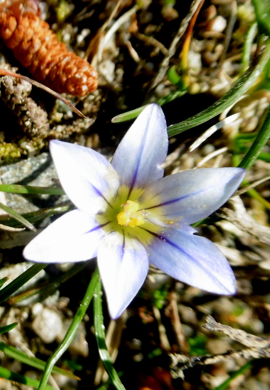 Vraiment minuscule. Pas de feuilles visibles. Juste une petite étoile qui sort de terre.