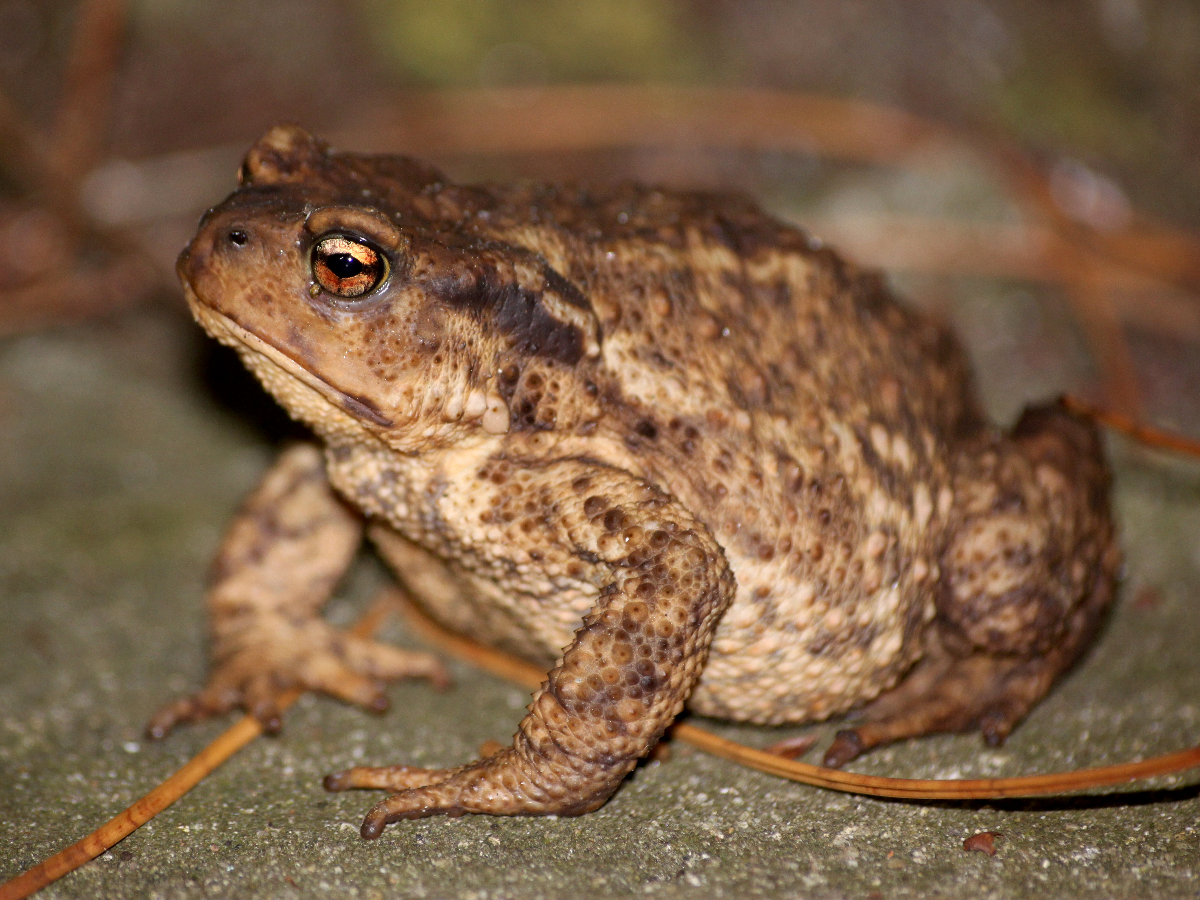 Un beau crapaud commun (Bufo spinosus) faisant une pose pour la photo (12 août 2023).