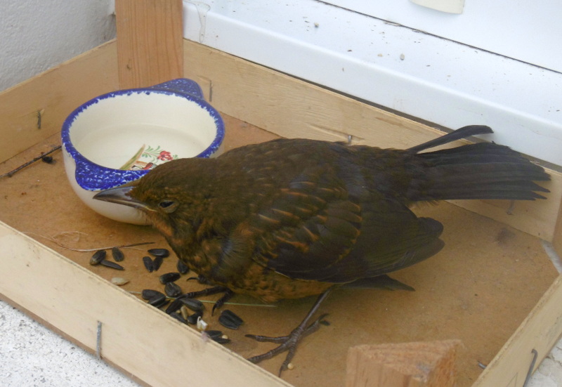 Apparemment blessée à la patte, trouvée dans la rue, et qui, j’espère, va se refaire une santé à l’abri des chats du quartier avant de reprendre sa vie d’oiseau