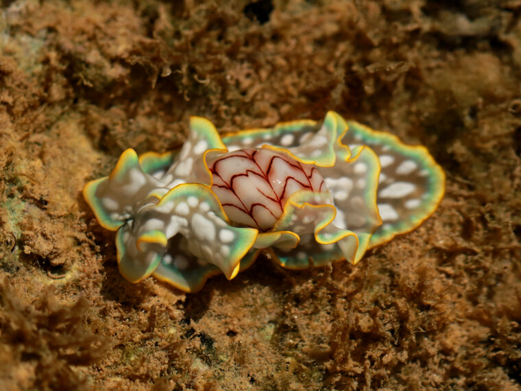 Limace de mer aux couleurs fantastiques de l’espèce Micromelo undatus rencontrée à la plage de Tamandaré, au Nord-est du Brésil.