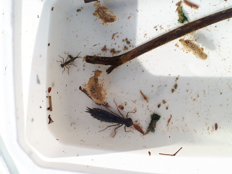 La plus petite larve est une larve de demoiselle (avec ses 3 plumets).