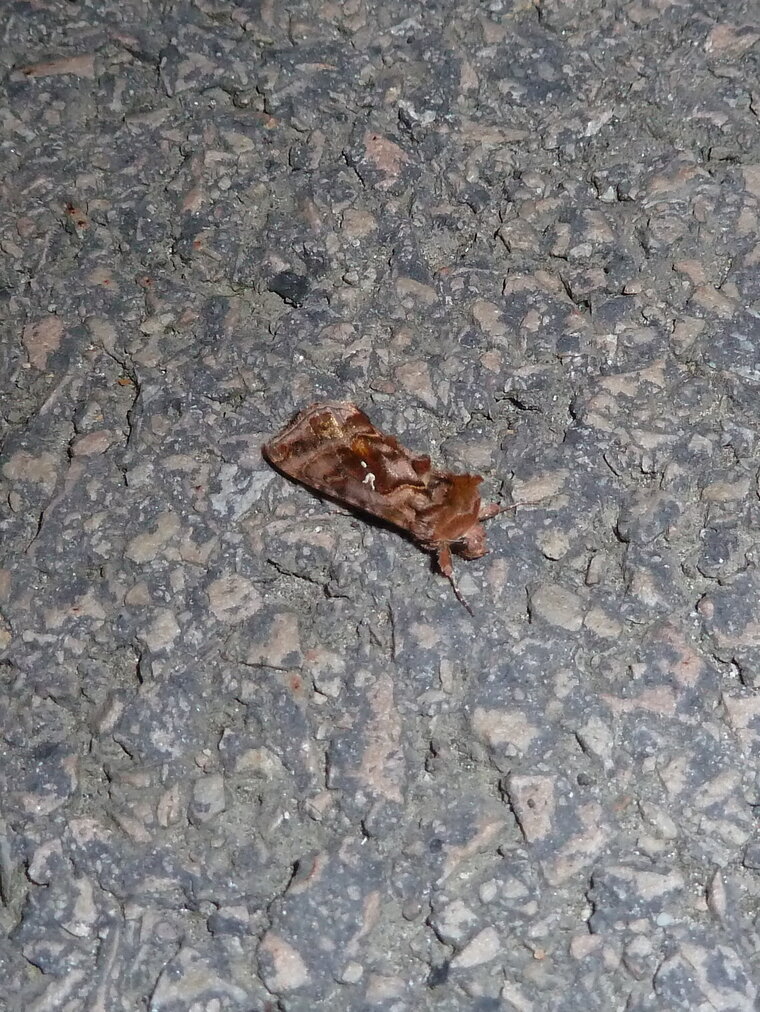 L’imago mesure 40 à 45 mm d’envergure. Ses ailes antérieures sont jaune brunâtre avec, au centre, une tache blanche rappelant la forme de la lettre grecque gamma. Les ailes postérieures sont brun clair, enfumées sur leur pourtour. Ils sont capables de voler très rapidement.