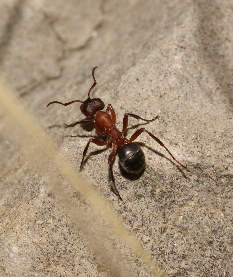 abdomen noir, tête et thorax marron-brun