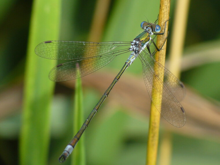 Lestes sponsa. Mâle. Vue de dos. Classe des Insectes. Ordre des Odonates. Famille : Lestidae. Photographie prise le 04/08/2011.