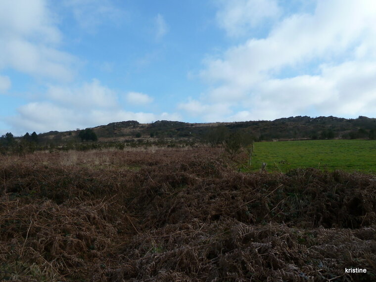 Les monts d’Arrée vu des tourbières. Sur cette photo on voit bien l’espace mis en pature pour les vaches et l’espace laissé en friche.